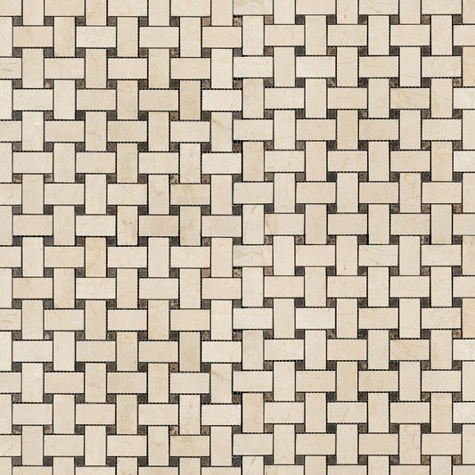 Crema Marfil Basketweave with Emperador Mosaic