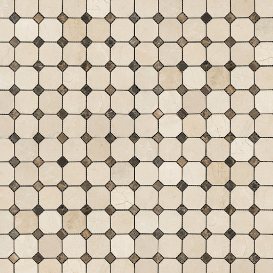 Crema Marfil Octave with Emperador Mosaic