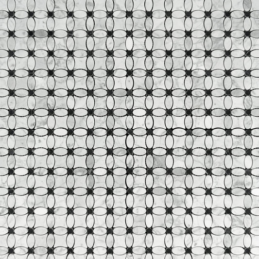 Carrara White Florida Flower with Thassos and Grey Mosaic