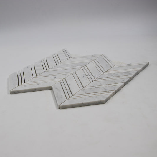 Carrara White Brick 2x4 Deep Beveled Mosaic